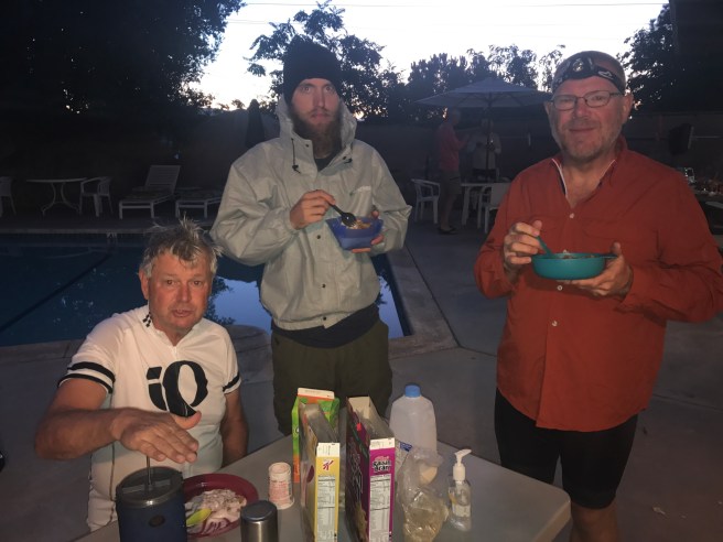 Last night I didn’t sleep very well. It was really windy, and the temperatures in Boulevard dropped down to 40 degrees. I was cowboy camping, so had not even set up a tent, because I was sleeping under someone’s patio cover.  Wearing an extra layer of clothes and having my quilt in its mummy bag configuration weren’t enough to keep me warm.  Note to self, grab a real sleeping bag when I get to Phoenix.