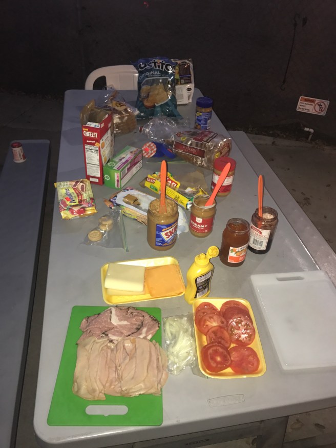 Our Lunch Spread. Most of that food gets made into sandwiches or packed up in Baggies to be eaten during the day