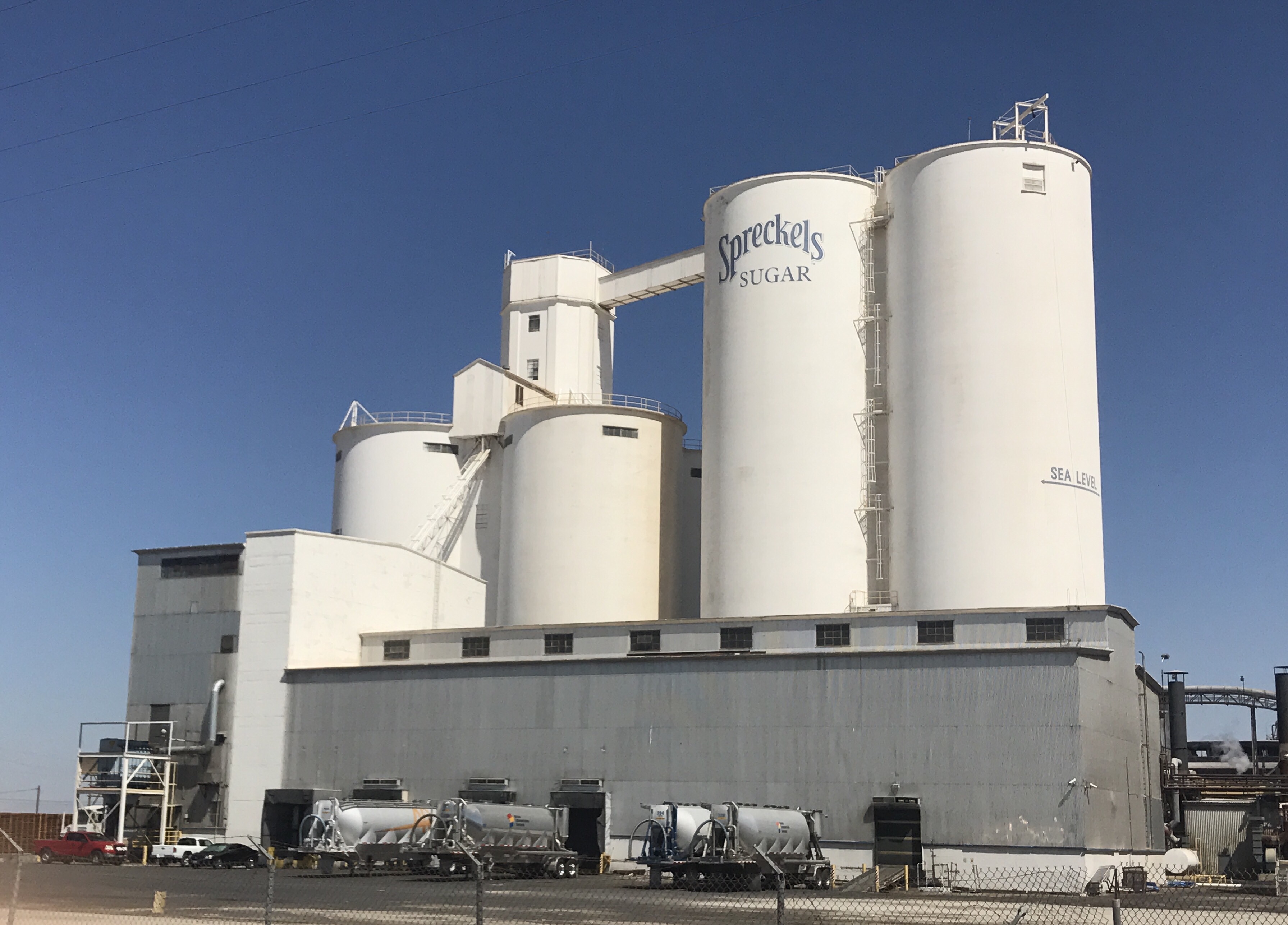 Note the “Sea Level” line on the right side of the rightmost sugar silo at the Spreckles Sugar Plant