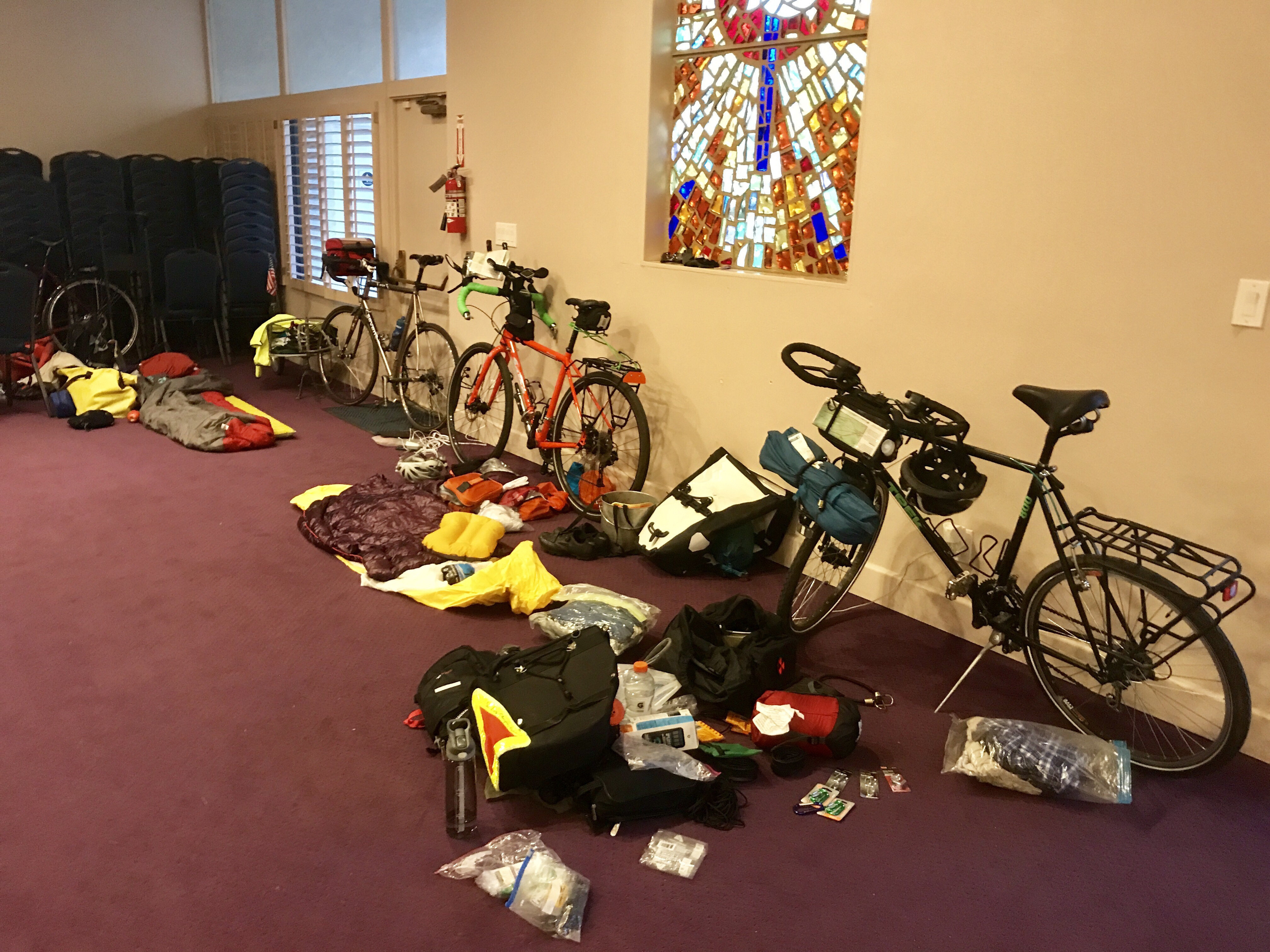 After passing through El Centro, we peddled another 11 miles to Brawley, where we are staying in the community room of Gateway Church.  We were able to bring our bikes indoors and set up our sleeping bags on the floor, and it is like heaven.  No tents to deal with, a kitchen to cook in, real showers that someone cleans, and a free laundry room.