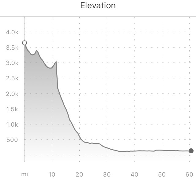 We ended up riding 67 miles and doing an insignificant amount of climbing, but check out the graph of the descents