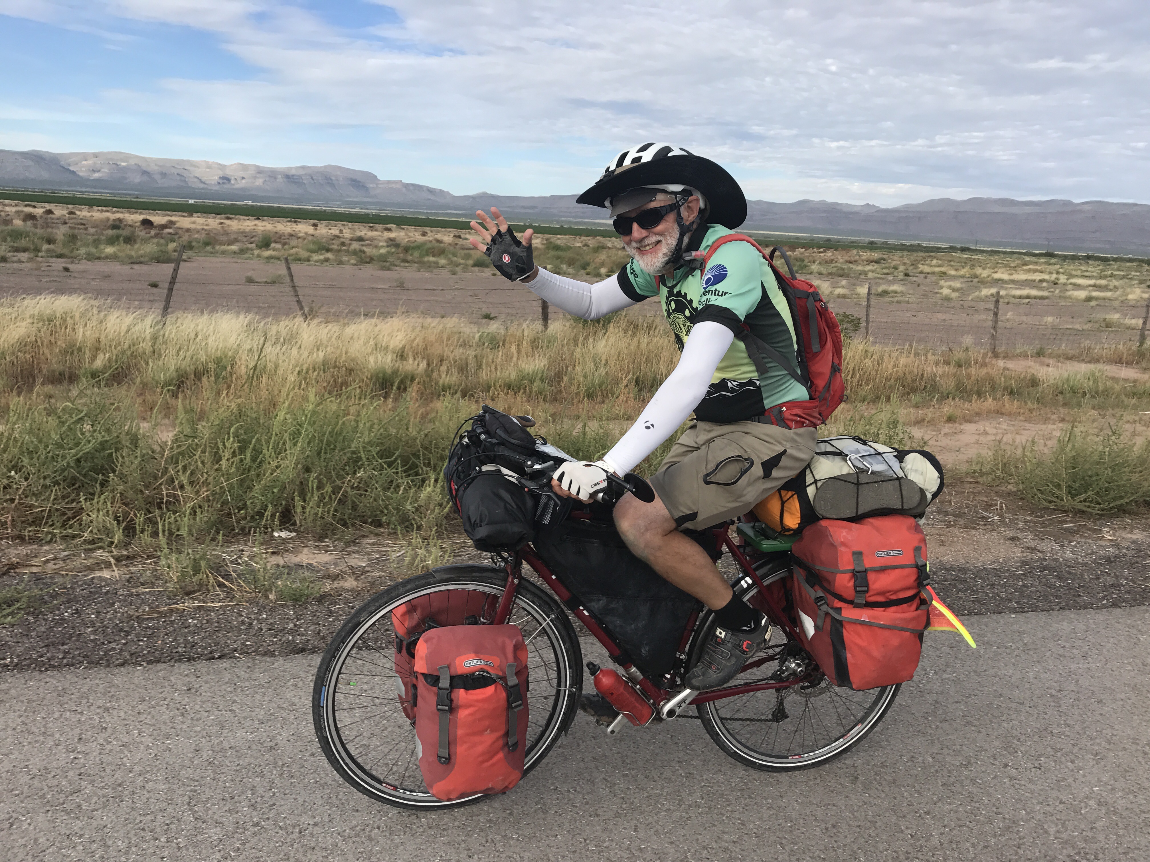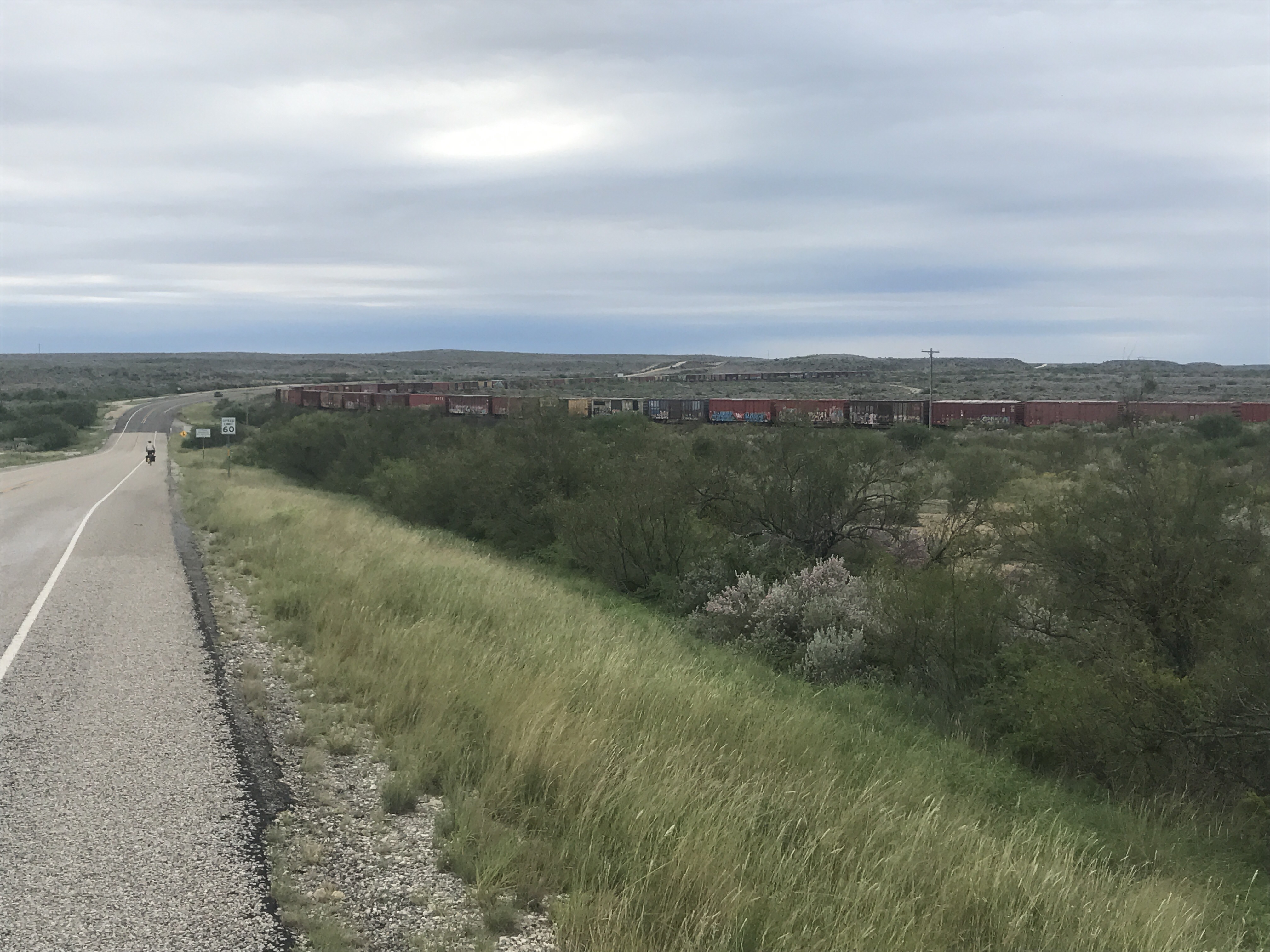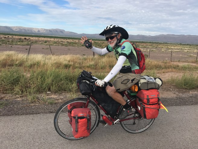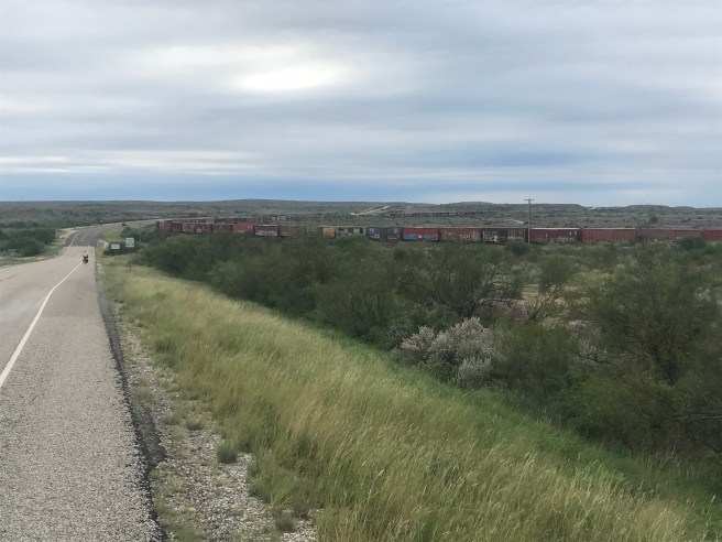 One third of the miles we are covering on this transcontinental bike ride are between the east and west borders of Texas. That’s a lot of Texas. Last night was another super windy night, and it was still blowing when we woke up this morning. Ahead of us was a 58 mile day, at the end of which it was my turn to shop for the next 3 meals and prepare dinner with Ken. Riding out of Marfa, we (Ken and I) were riding into a strong headwind. Not a good start to the day.