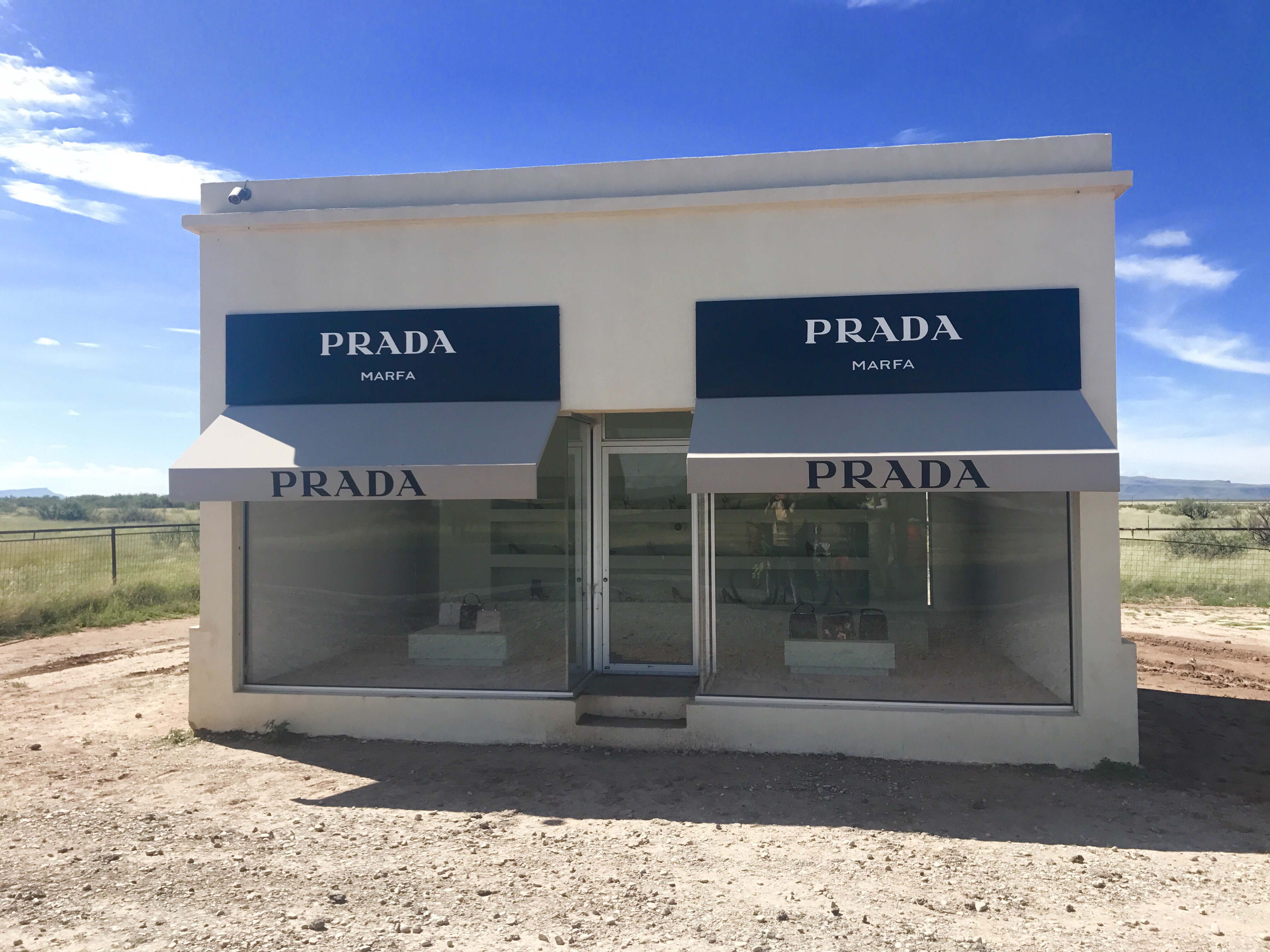 The second highlight was just a couple of miles further down the road in the middle of nowhere–the “Prada Marfa” permanent land art installation. It looks like a Prada store, I guess (I’ve never really paid attention to designer brands and stores, so I can’t be sure), but the doors are sealed shut, and I heard that the glass is bullet proof. I also heard that it is a tour bus stop on West Texas bus tours.