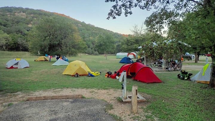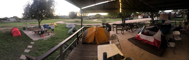 We camped at Three Sisters RV Park and occupied a huge grassy area and a pavilion with a full kitchen. Tents were set up everywhere, with 7 on the grass and 4 under the pavilion. I went for the concrete floor of the pavilion to avoid having to deal with morning dew on my tent and footprint.