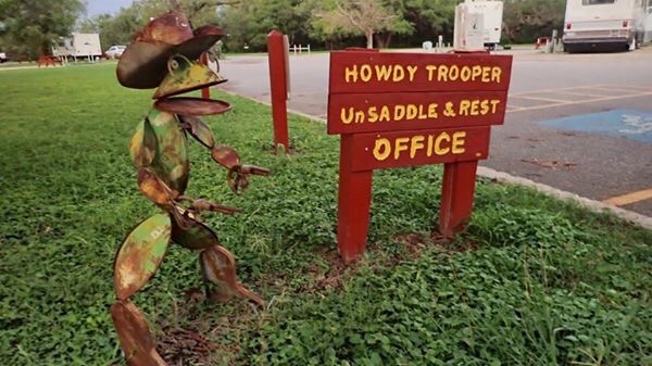 After lunch, we backtracked to Walmart to restock our snacks, bug spray, etc., then I got caught up in a few phone calls. Didn’t make it to Fort Clark RV Park till past 6 PM, and even though much of the day was downhill and with a healthy tail wind, I was still completely wiped out when I arrived.