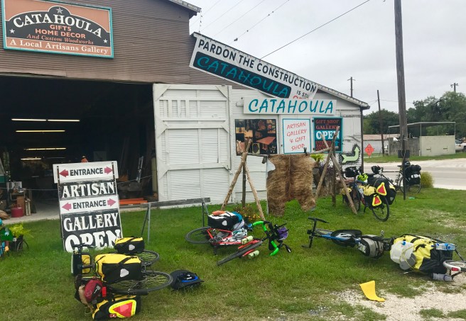A short while later, we stopped in Leakey, a little tourist and fishing town, to get the milk shake that last year’s ride leader mentioned in his notes. Unfortunately, we never found the described place, but instead, we found a cool barn/shop full of handcrafted gifts. I was with 4 guys, at this point, and they all bought something, so I caved in to the peer pressure and bought myself some cheap earrings that are made from part of a bullet casing. Just my style, eh?