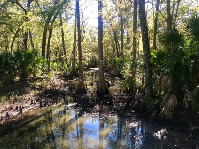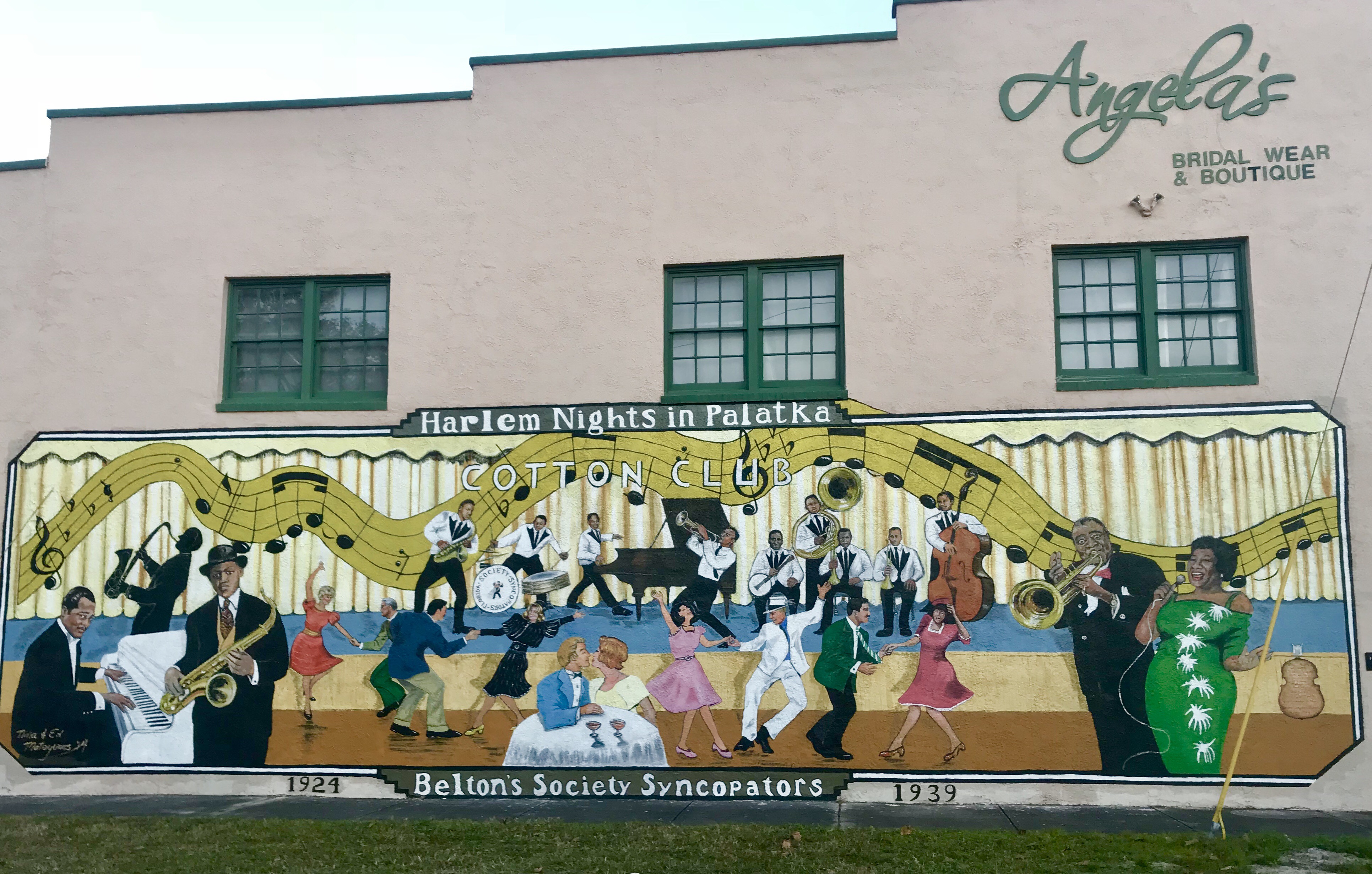 Today was the only day of the entire ride across the country that the entire group started and ended the route together. I awoke extra early to ride through downtown Palatka and see the sights I missed yesterday. Riding out on my unloaded bike, I looked for all the murals that are part of their downtown restoration project–there were many, but these were my favorites: