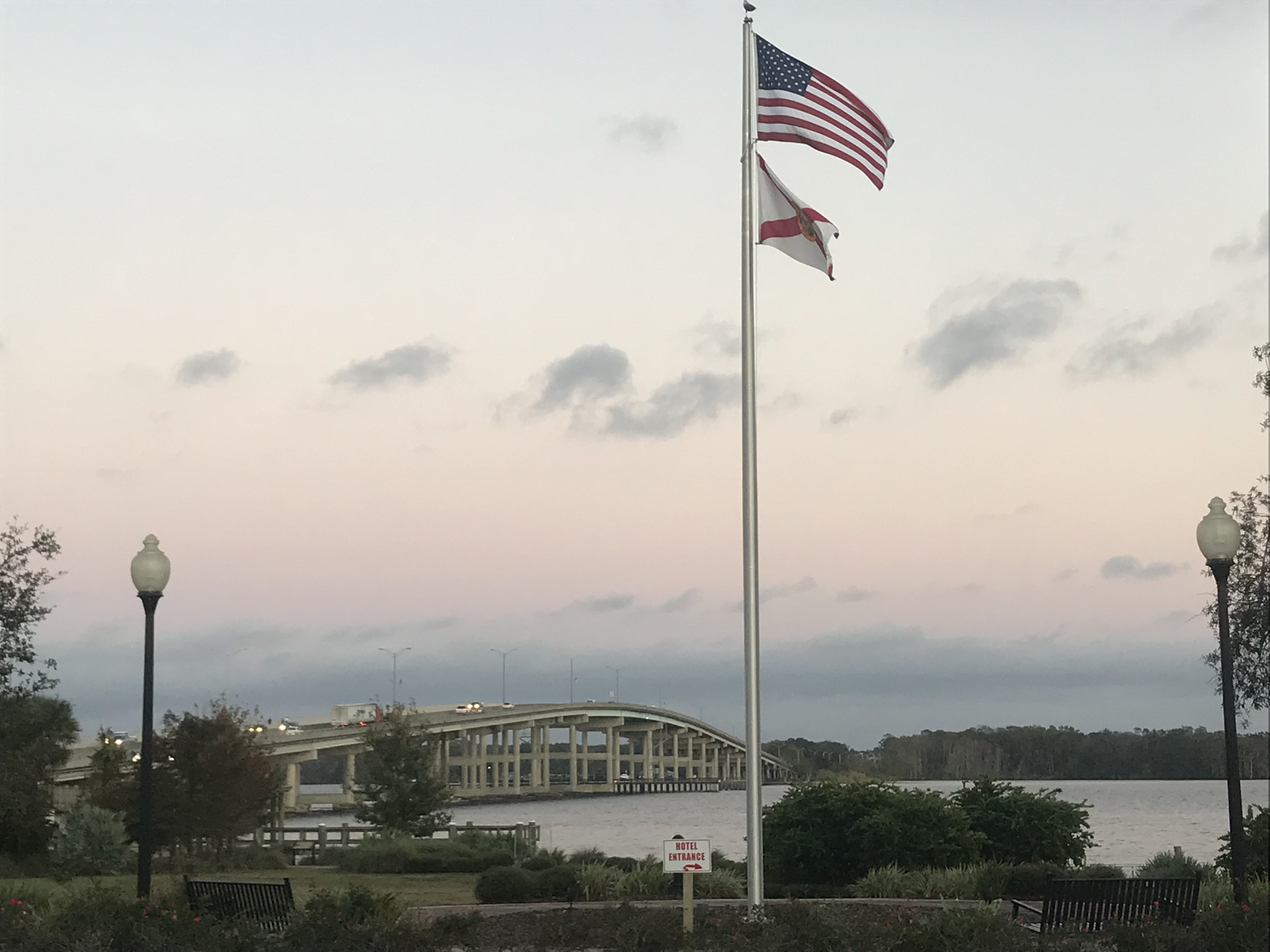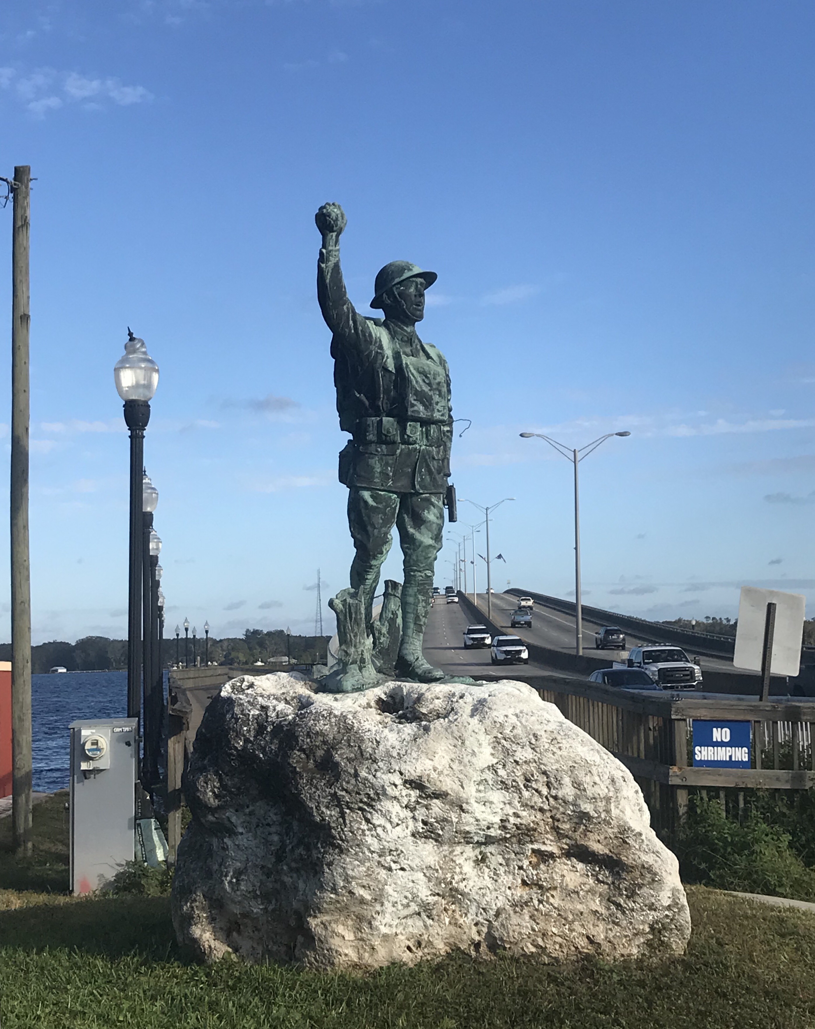 Then, at the end of Main Street was a Veterans Park, along the waterfront of the St. John’s River, and next to the park was Memorial Bridge, with 4 life sized bronze statues of World War I Servicemen standing watch on the 4 corners of the bridge. Very patriotic, and you know how I like that.