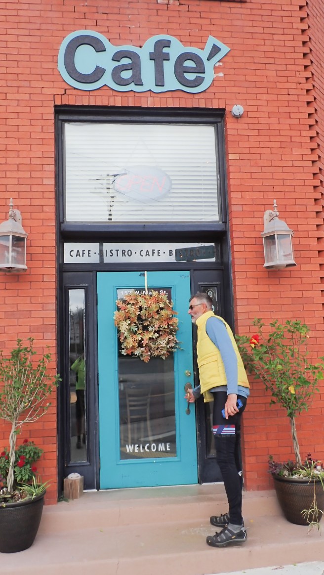 I got back to the motel by 8:20, and all the guys were already on their bikes, ready to roll. I hurried and loaded up my bike, and pretty quickly we were on the road. It was fun riding together for the first time since we began riding the first day of the tour. Early in today’s route, we cycled along a dedicated bike path for several miles, which made it possible to talk and take photos of each other, without interference from traffic.