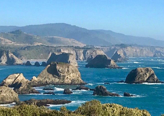 After passing Gualala, I entered Sonoma County, and expected to see some wine country, but the scenery and terrain were more of what yesterday offered up: forests; high desert–kind of; and the ocean, with lots of rock formations and crashing waves. I passed through state, county and regional parks, and, of course, a few corny tourist traps.