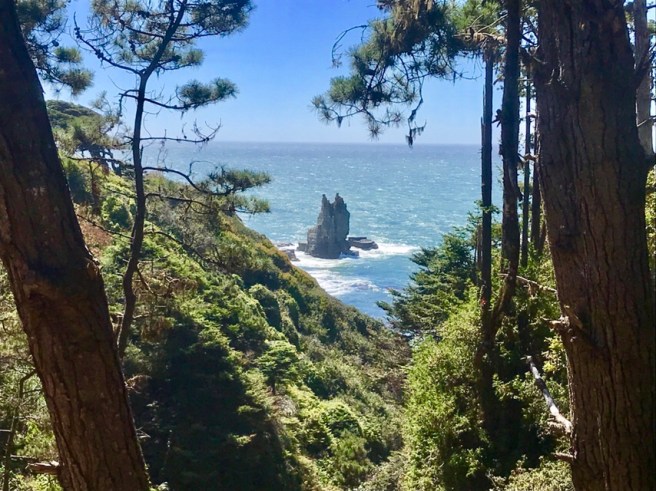 Check out this view of the ocean from my campsite. Amazing. And my neighbor, Madison, was also amazing. I smelled some kind of culinary creation going on somewhere in the campground, and when I asked her where she thought it was coming from, she fessed up that it was from her site. They had leftovers of sliced onions, zucchini, mushrooms and peppers cooked in truffle oil, butter and another secret ingredient, that they didn’t know what to do with. So she brought them over to me, and those veggies are the best food I have tasted on this trip. I thought I had died and gone to heaven. Thank you Madison. You made my day.