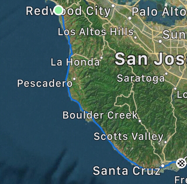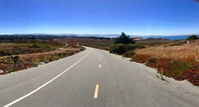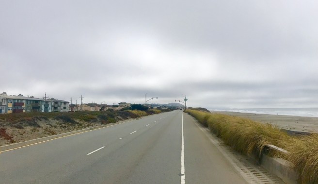 And this was the scene, as I now started cycling toward Half Moon Bay. Ocean on the right, and civilization on the left. And the road was nice and level, and my legs were enjoying a little holiday from grinding hill climbs.