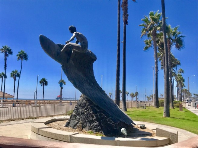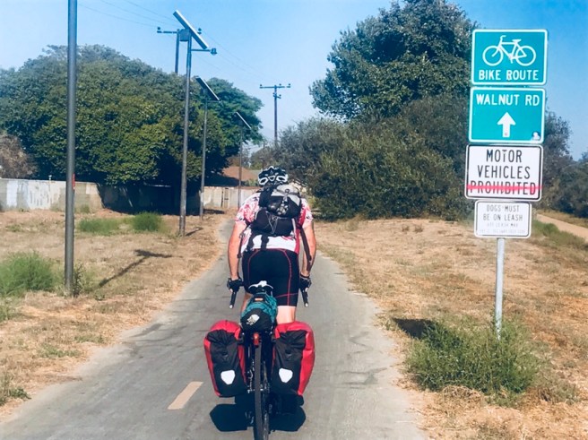 In Surf City, aka Huntington Beach, Don Wonderful (that’s his Strava name) sought me out, when he saw I was on a loaded touring bike. He wanted to make sure I didn’t miss the cool Surf City sights, such as the Surfing Walk of Fame, which is similar to the Hollywood Walk of Fame, except the names here were surfing legends. Don was working on his own goal–winning a one-month Strava challenge to see who could ride the most miles in a month. He had ridden over 3000, and still had a few days to go.