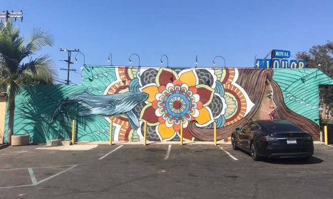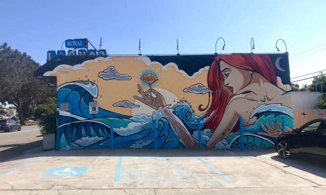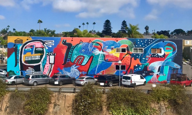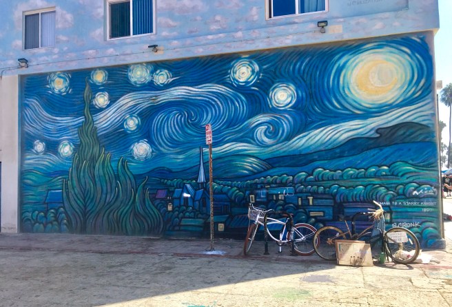 I’ve heard and read about Venice Beach, and I’ve seen it on TV, but today, I actually got to ride down it. There were shops, eateries, gardens, street performers, vendors, artists, throngs of tourists, homeless and vagrant people, and lots of murals.