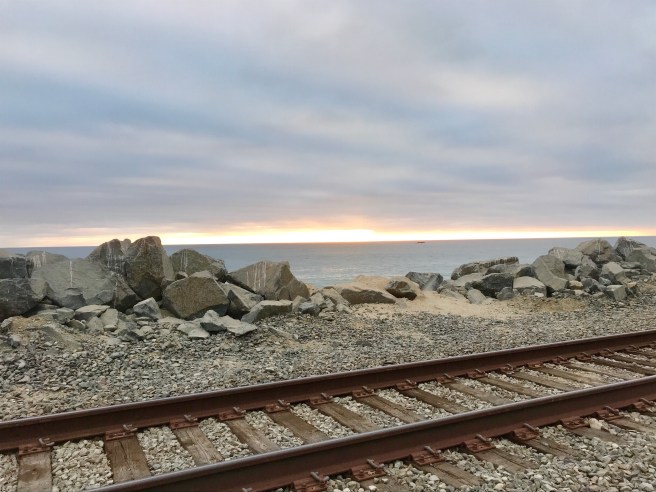 Riding along the coast can be hilly, but when there is a railroad track next to the road, it is usually _ _ _ _ (fill in the blank). What a great section of road for a leisurely ride. And look how glassy the ocean water was. I would have loved to have been wake boarding on that water.