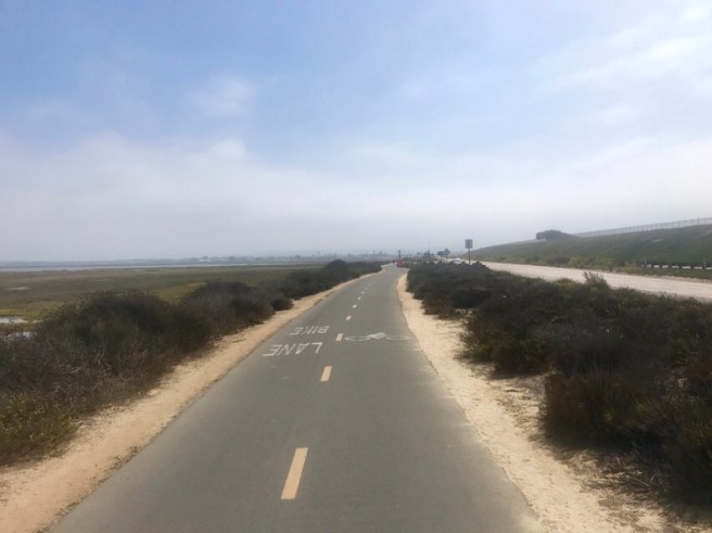 Right off the ferry, I caught a bike path that took me all the way through Coronado, past the Naval Amphibious Base, through the Silver Strand, and back into San Diego. It was smooth sailing–some mighty fine cycling.