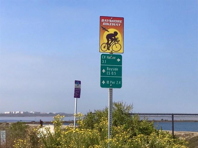 After passing through Mission Bay and Point Loma, I was supposed to catch a ferry to Coronado Island, but the map and street signs were in conflict. They had me turning right at this big San Diego Airport sign, which seemed incredulous, but that’s what my map told me, so I did it. Turned out that the ferry to Coronado Island was really just a boat, so I rode right past it twice. But eventually, I made my way to the island.