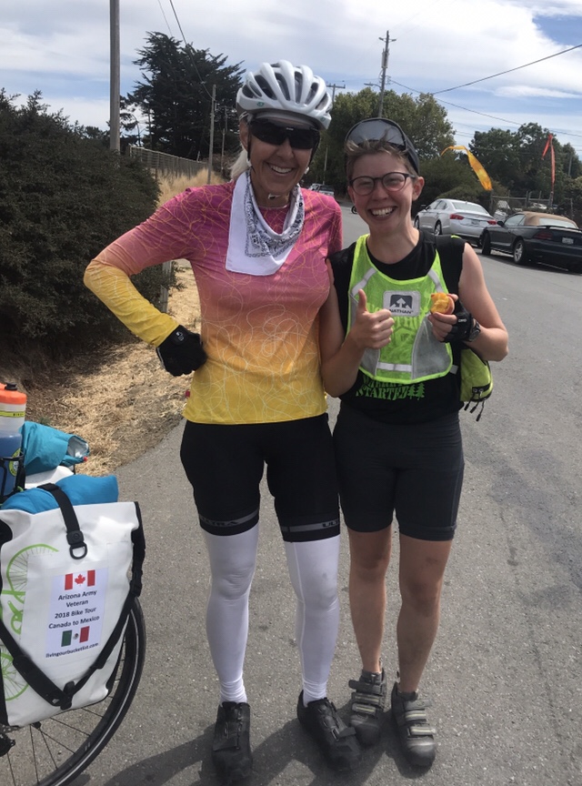 We said goodbye to our private beach, and Karen hauled my panniers to the top of the hill into the park in her car, for which I am eternally grateful, and we said our goodbyes. I wish I was traveling with someone fun like Karen. We would be having a blast all day, every day.