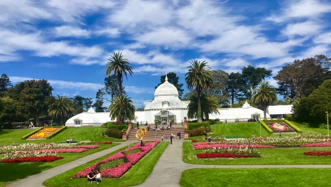The Conservatory of Flowers is adjacent to the President Garfield statue, and it is just plain pretty, so I had to stop and check out the gardens.