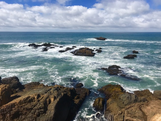 Check out this view of the ocean from my campsite. Amazing. And my neighbor, Madison, was also amazing. I smelled some kind of culinary creation going on somewhere in the campground, and when I asked her where she thought it was coming from, she fessed up that it was from her site. They had leftovers of sliced onions, zucchini, mushrooms and peppers cooked in truffle oil, butter and another secret ingredient, that they didn’t know what to do with. So she brought them over to me, and those veggies are the best food I have tasted on this trip. I thought I had died and gone to heaven. Thank you Madison. You made my day.