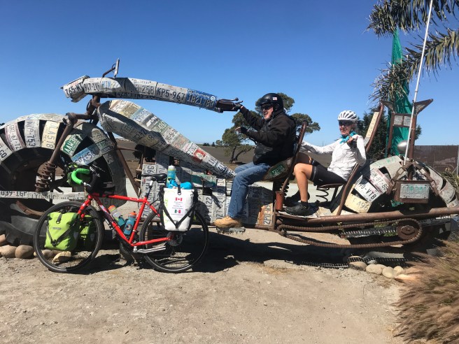 In Surf City, aka Huntington Beach, Don Wonderful (that’s his Strava name) sought me out, when he saw I was on a loaded touring bike. He wanted to make sure I didn’t miss the cool Surf City sights, such as the Surfing Walk of Fame, which is similar to the Hollywood Walk of Fame, except the names here were surfing legends. Don was working on his own goal–winning a one-month Strava challenge to see who could ride the most miles in a month. He had ridden over 3000, and still had a few days to go.