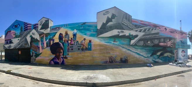 I’ve heard and read about Venice Beach, and I’ve seen it on TV, but today, I actually got to ride down it. There were shops, eateries, gardens, street performers, vendors, artists, throngs of tourists, homeless and vagrant people, and lots of murals.