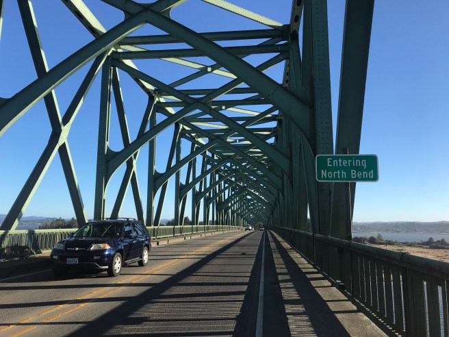 And this is where I met my new friend Karen Gray, a marine biologist on an adventure of her own. She is headed up to Samoa, which is across the bridge I rode into Eureka on, two days ago. She’s going to help set up kelp and shellfish growing operations on the site of an abandoned pulp mill I rode by on the weird Google Maps reroute I took that day.