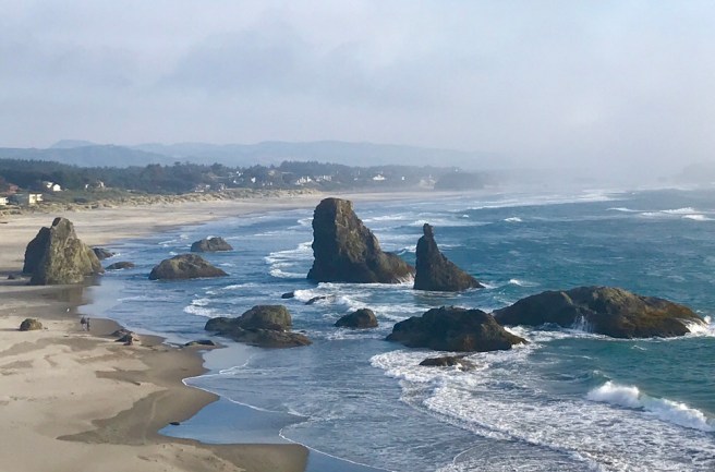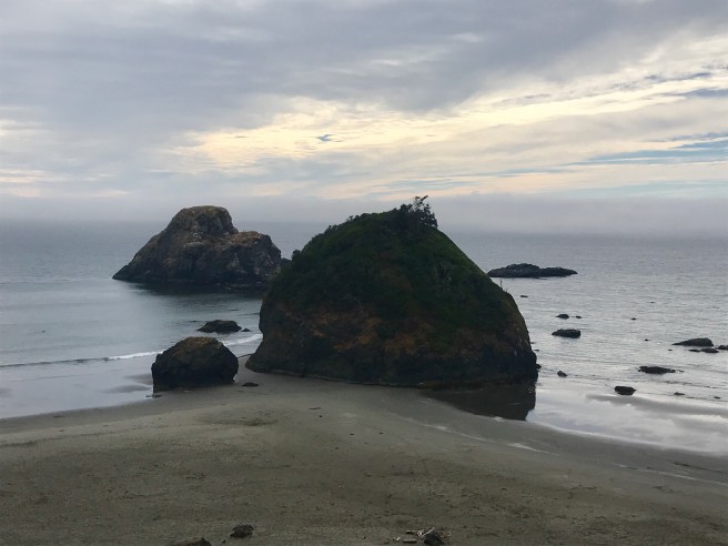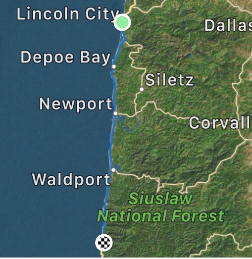 It was now getting dark, but I have some great lights on my bike, and I actually enjoy riding at night. Arriving in Bandon just before 9 PM, I found an open grocery store with hot deli food. Dinner. I asked a gentleman in the store about the road between Bandon and my campground, and he told me that if I rode it in the dark, I would miss some of the best scenery in Oregon. So, I checked myself into another cheap motel and set myself up for a restful night in a comfy bed, with lots of wifi, a long hot shower, and time to make a couple of phone calls.