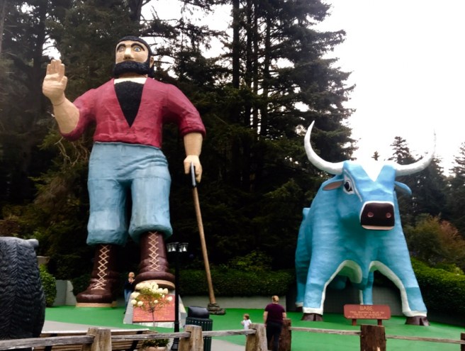 Then I rolled into this tourist attraction. Did you know that Paul Bunyan had a blue ox named Babe? I didn’t. Check out the chest hair on Paul Bunyan, and check out how big he is compared to itty bitty little me.
