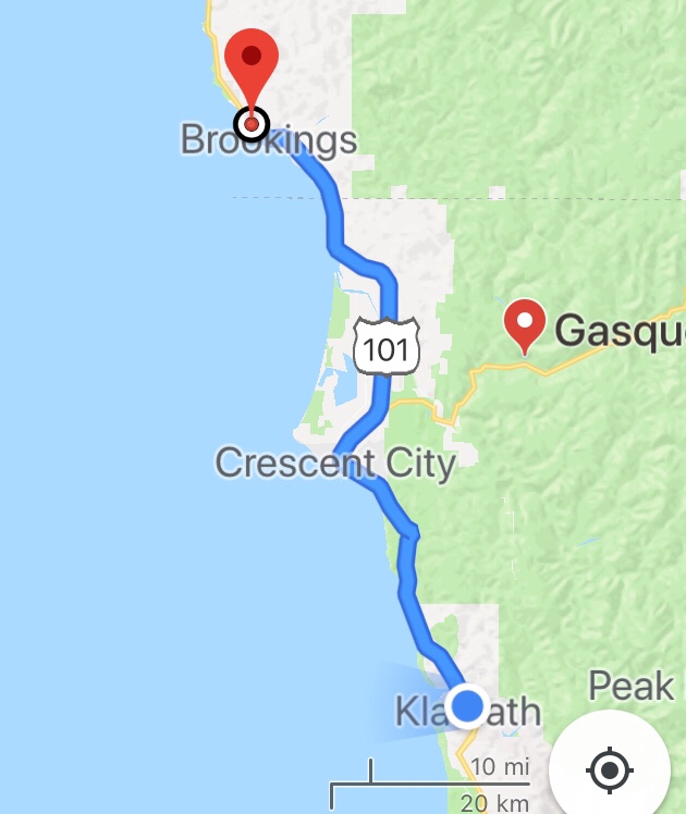 The best part of my day was crossing over into California. I’m going to miss seeing all the recreational marijuana shops (Not!). When I was riding through Bandon, a couple of days ago, a couple of tourists who looked to be about my age, pulled over to ask me if I knew where they sell marijuana. I thought to myself that they must be on something to think I might even have the answer to that question.