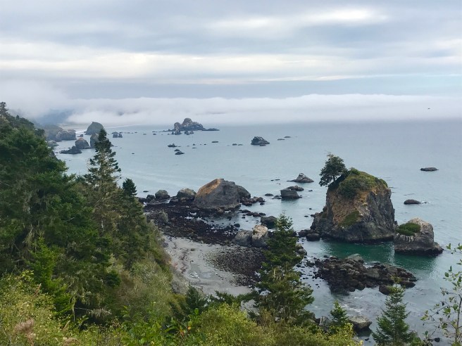 In Crescent City the route went way off Highway 101 to follow the beach on the west and south side of town. I contemplated staying on the highway, but went with the longer route, which was a great decision. The beach was amazing, with rock formations, birds, cool beach houses, cool beach mansions, etc. I stopped over and over again, to take in the scenery, and believe me, an iPhone camera cannot do it justice.