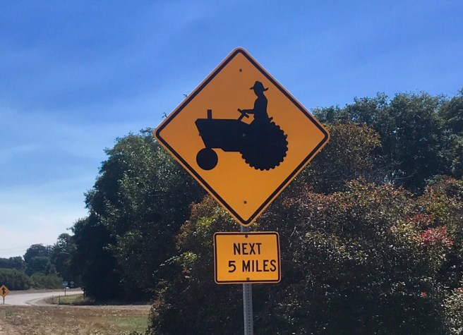 Did I mention that there were some heavy duty climbs on today’s route. I have no idea how long they were or what the grade was, but the longest was a real killer. I thought it was over when I reached this sign, but I was wrong.