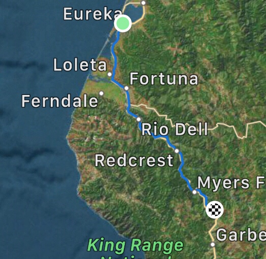 With a great night of rest, in a little cottage in the Redwoods, in the tiny little town of Phillipsville, under my belt, I loaded up steed and hit the road.