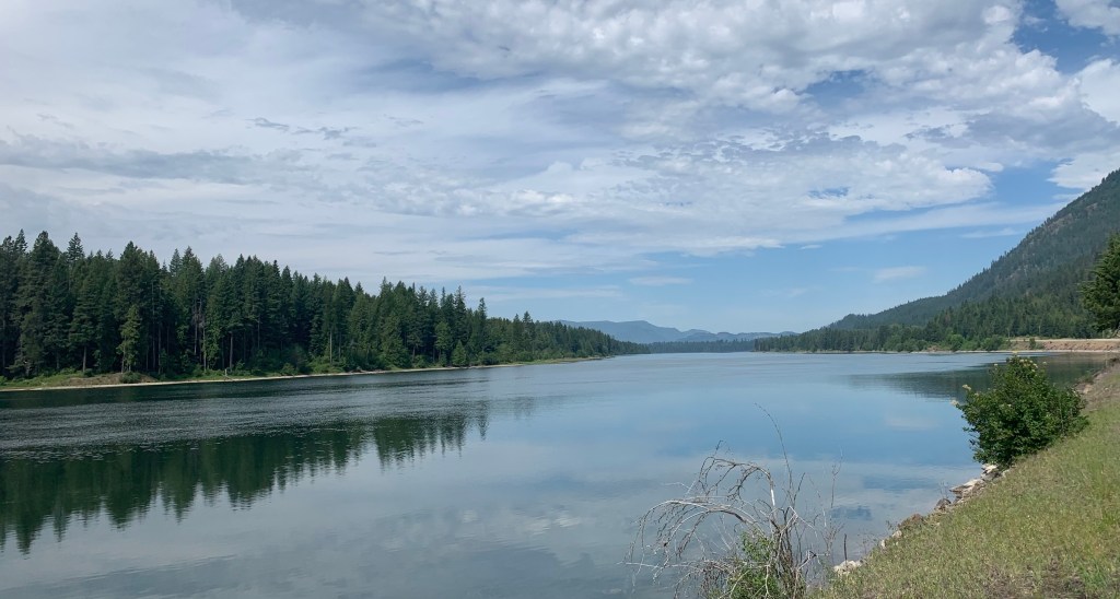 When I finally made it down to the bottom, Ed was waiting for me at the Visitor’s Center. We rode up to our campground, and on seeing the scorched earth and lack of shade, made a split second decision to stay in the cheap motel next door. Temperatures were in the mid 90s, and it was only 1:30 PM. No way were we going to sit outside for 8 hours, waiting for the sun to set and things to cool down. The motel rooms didn’t have air conditioning, but being indoors with a fan still beat sitting out in the heat. We showered, went out to find lunch, then napped and attempted to work on our blogs, which didn’t work, due to lame wifi. At dinner time, all 3 of the restaurants in St. Mary were overrun with patrons, so eating out was out of the question. We ended up eating another Hungry Man entree from the grocery store and regretting it. Maybe we learned our lesson, this time.
