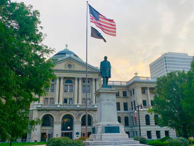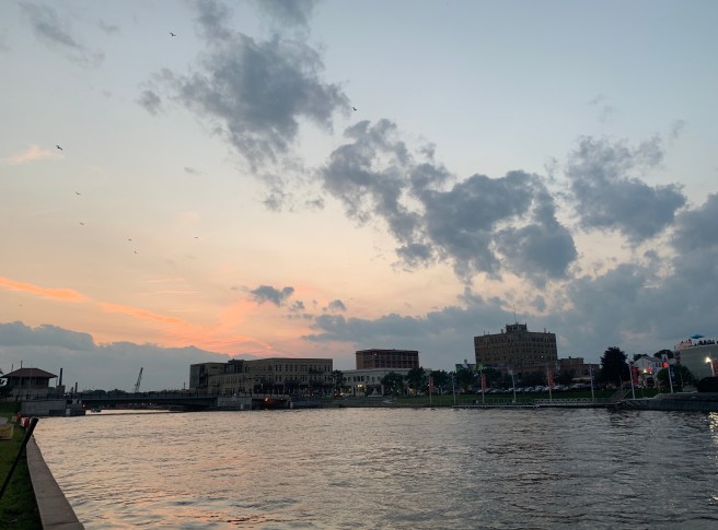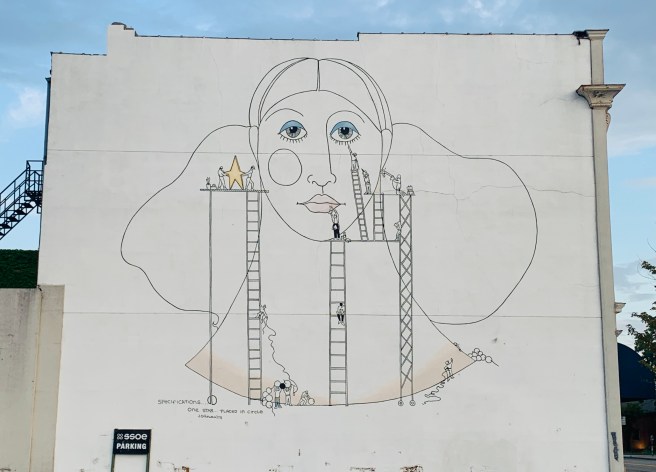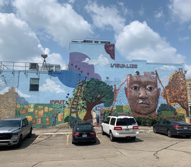 We didn’t get to see much of Toledo as we rode to Larry’s house, last night, so I was looking forward to a little sight seeing as we passed through town today. We got on he road at 6:45, with an 80 mile day ahead of us, so there wouldn’t be much time for goofing off, which I excel at. The route took us right into downtown Toledo, which has a bounty of beautiful historic church buildings, that looked like they were imported from Europe, and a great collection of murals–two things I really like looking at.