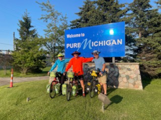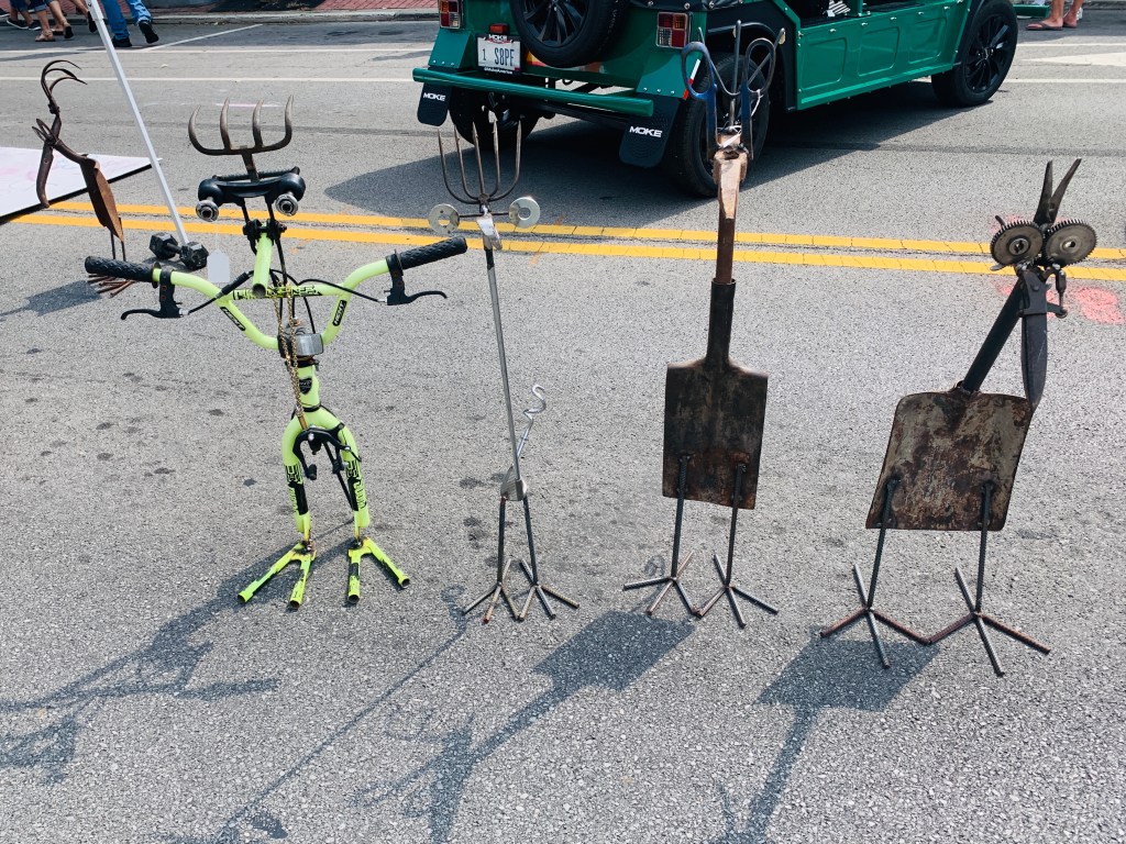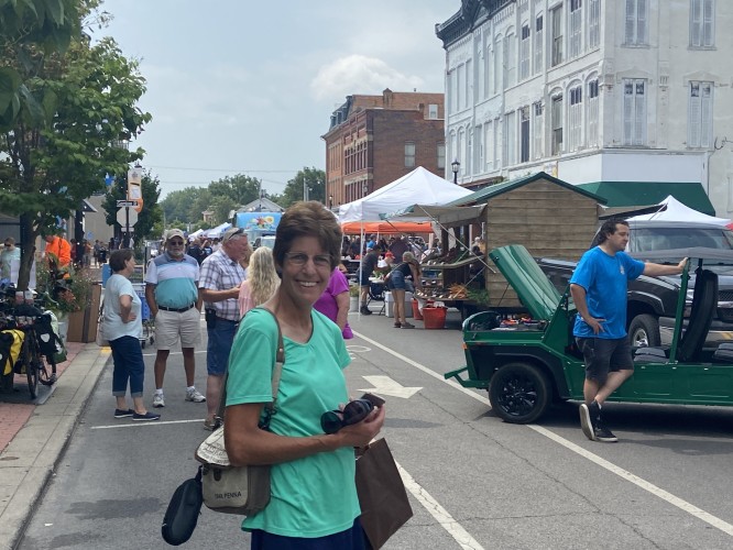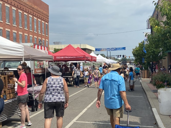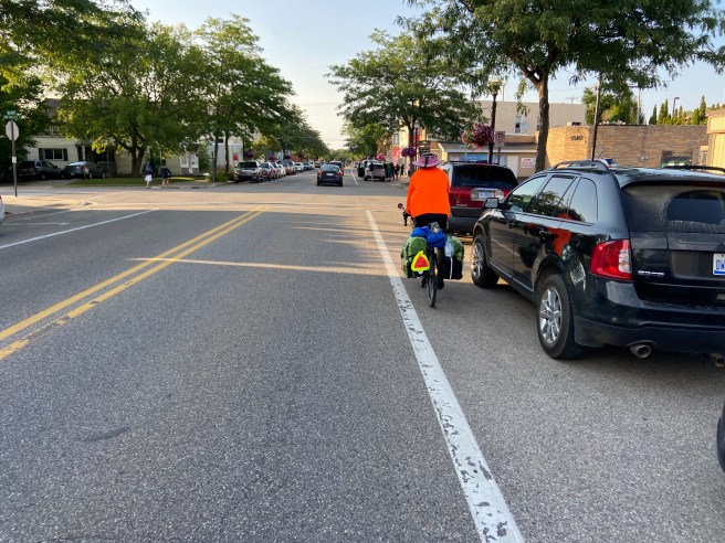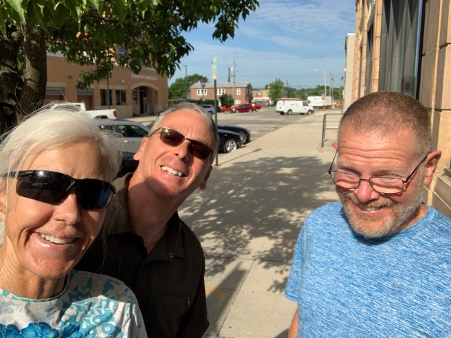 I’ll have to admit that I may have overdone it with the second breakfast, because I was very full, when we pulled out of Elmore, and Fremont was only 14 miles (about an hour) up the road, and we were flying with that tailwind. At the rate we were going, I wasn’t going to be able to muster up an appetite for more food. Sue messaged me that there was a street fair going on in Fremont. The street fair in Fargo was the last place we saw her, so meeting her at one right here in her own back yard seemed fitting.