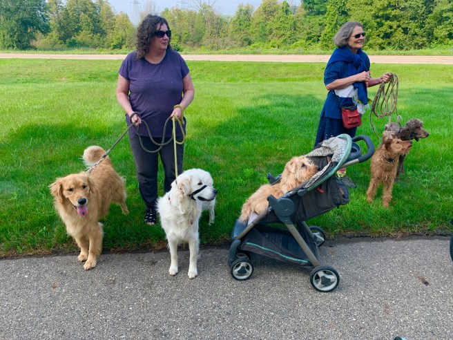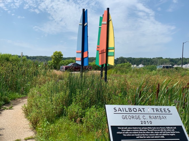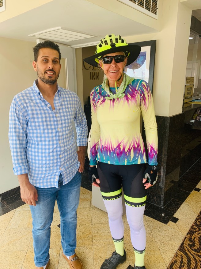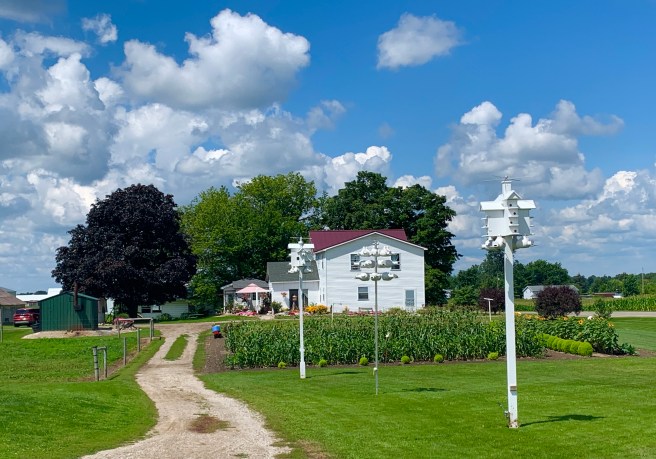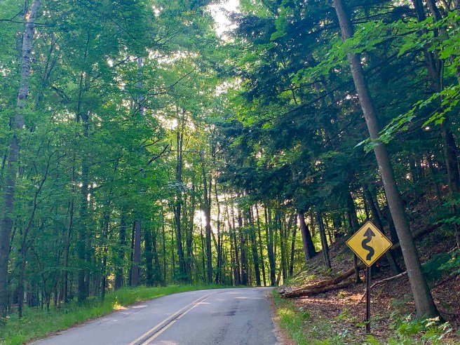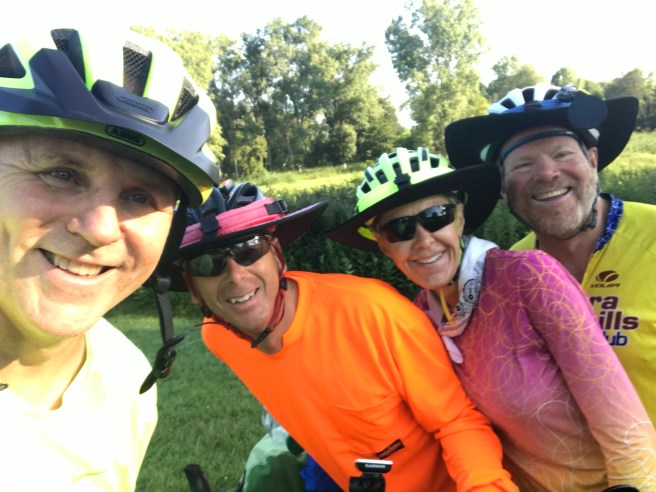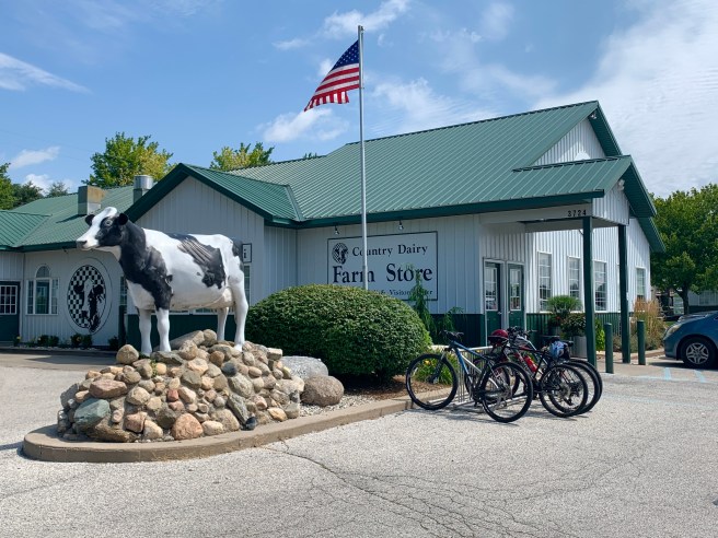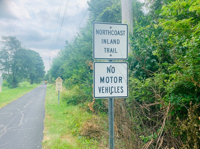 Once we were out of town and moving down the route, we traveled on some nice country roads, but spent the majority of the day on rail trails. Nice, smooth, clean rail trails. A tail wind kicked in, because a greater power knew that we needed a boost, today, and it helped us move quickly and easily toward our destination, which we needed a little help with, because–dah dah DAH–we were meeting up with our friend Sue, yet again, today!!!