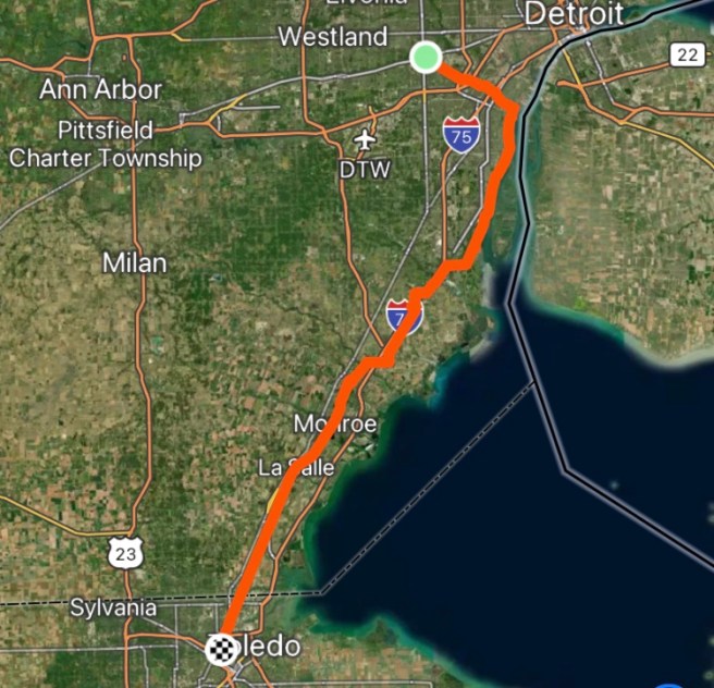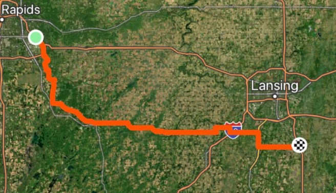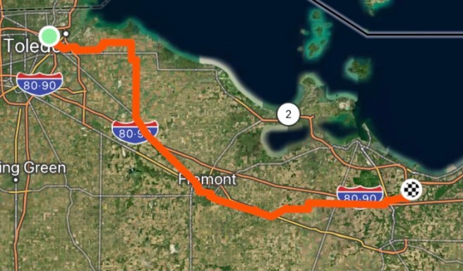 We’ve been coordinating with her, since she left the route in Fargo. She lives in Ohio, and had told us which cities on the route were close to her. Well today was the day we were near those cities, and she knew it, and we knew it, and we had a plan to meet up. I started messaging her as soon as we got on the road and updated her every hour or so. The plan became to meet up in Fremont, which was about where and when we would be wanting lunch.