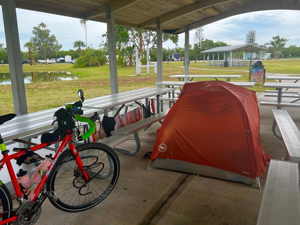 The mud splatter from the rain had to be cleaned off my bike and the chain re lubed, and I had to get my gear ready for tomorrow.