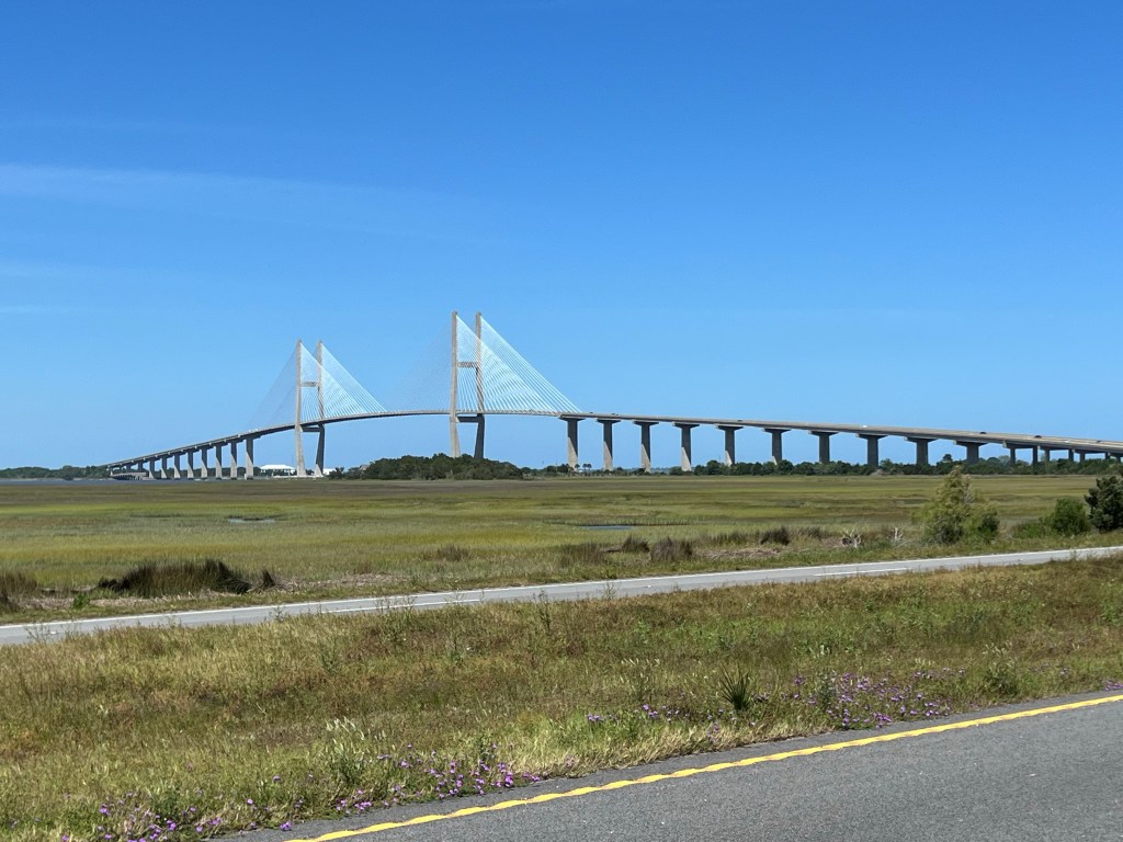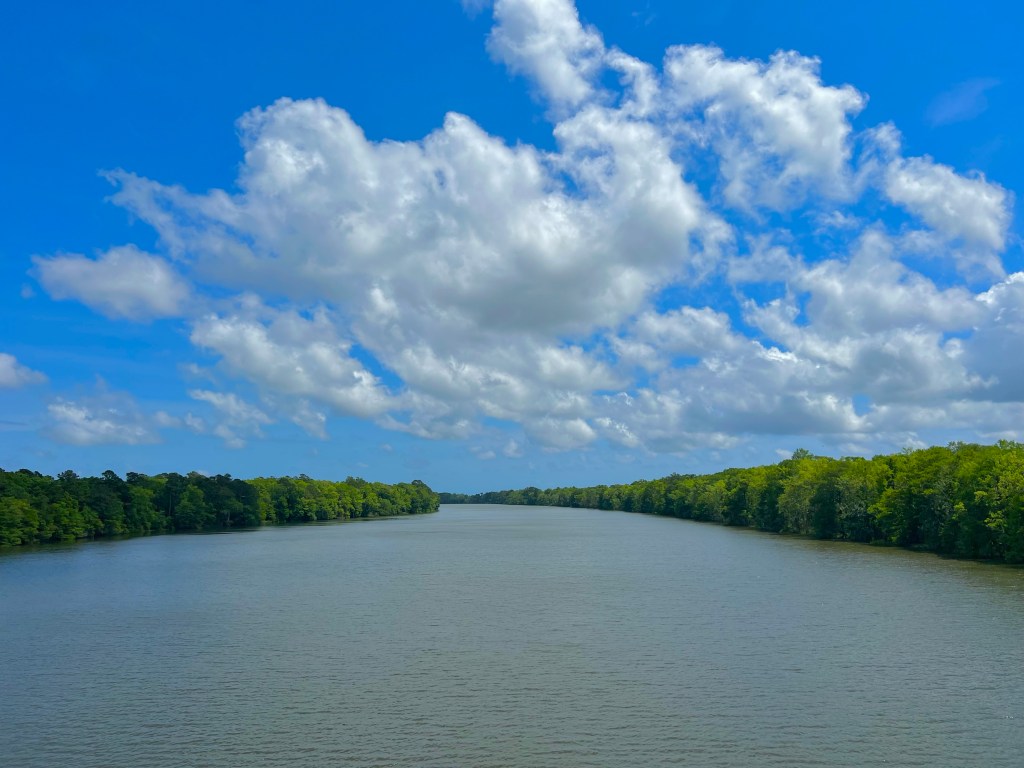 It was a beautiful clear day, so I inquired to see if there was a shuttle to take me to see the USS North Carolina, which is open for tours on the other side of the Cape Fear River, which is, as you might guess, a very wide river, like the other rivers I’ve posted photos of.